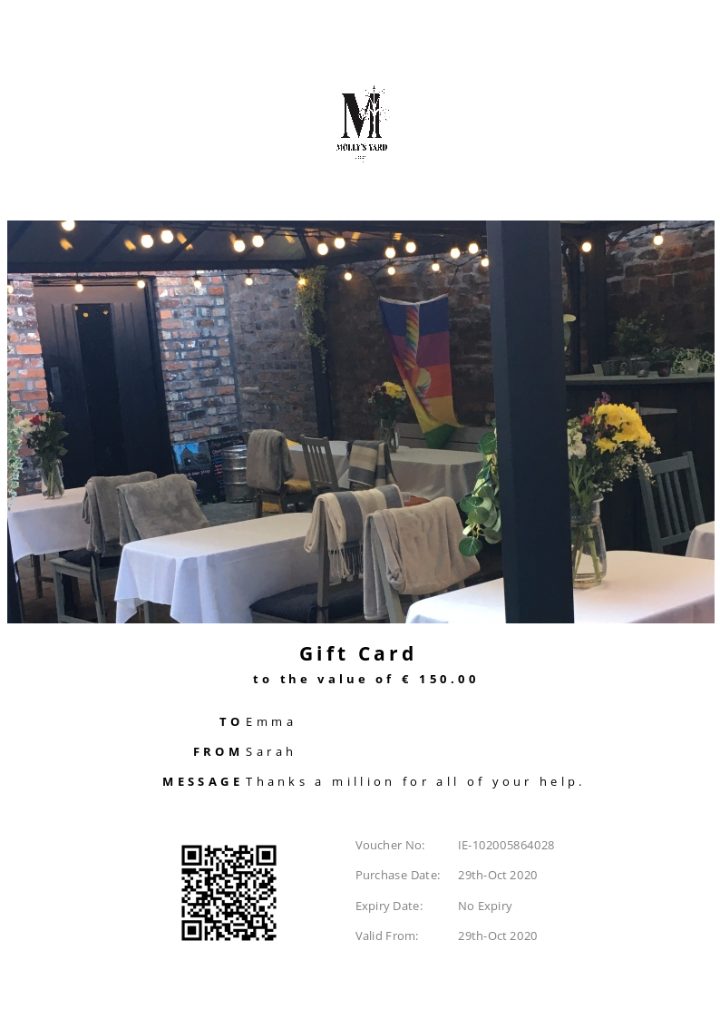 Molly's Yard allows you to purchase instantly printable gift vouchers, special offers and tickets using the Voucher Connect platform.